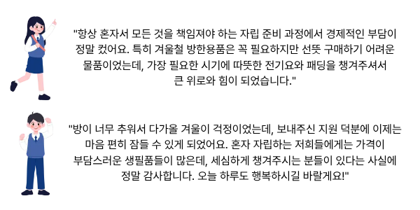 총 100명에게 전달하며 따뜻한 일상을 지원했습니다.
