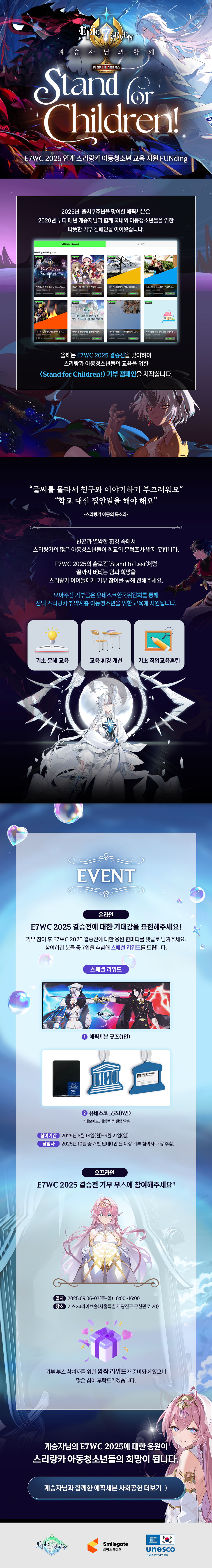 E7WC 현장감이 정말 좋았습니다. 다음에도 현장에 가고 싶네요. 이번에 기부 부스보고 기억났는데 예전 인게임에서 기부 패키지 팔고 그랬었는데 이젠 안 하는지 궁금하네요.