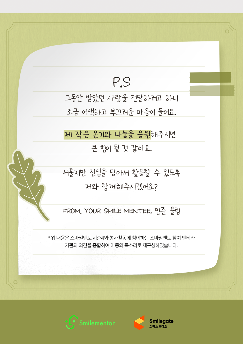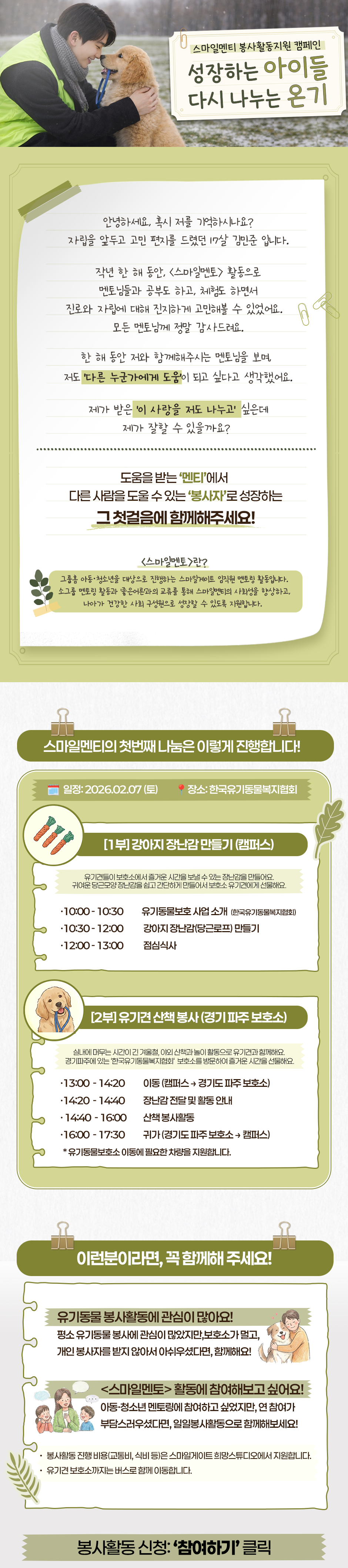 스마일멘토와 함께 성장한 스마일멘티 아동·청소년 봉사활동 지원 캠페인